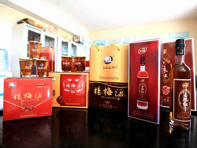 峡江县玉林食品有限公司生产的杨梅酒注册商标为“玉珠牌”,玉珠杨梅酒选用江南优质杨梅为主要原料,配以五种粮食(小麦、大麦、玉米、大米、高粱)蒸馏的白酒,加入冰糖等,经传统工艺加工而成,不含任何添加剂.其酒色色泽鲜亮、果味浓郁、口感醇厚、酒香幽雅、回味悠长。并含有人体所需各种维生素、氨基酸、苹果酸等微量元素。